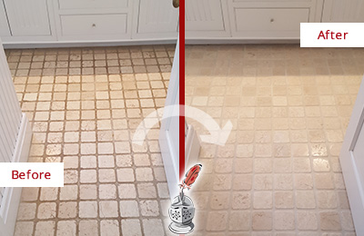 How to Clean Travertine Stone Flooring - The Spruce Apply a small amount of plain warm water to the floor with a sponge or mop that is nearly wrung dry so that the travertine surface gets just barely damp. Do not saturate travertine tiles with water, as it can penetrate down past sealant or into grout lines, causing discoloration, degradation, and the growth of mold and mildew . Disinfect the Floor