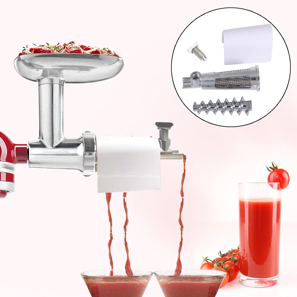 Fruit and Vegetable Strainer KSMFVSP | KitchenAid I treat myself to one food preservation tool each year and since I already had the food grinder attachment, I bought the Fruit and Vegetable Strainer that attaches to the grinder. Wow! I saved sooo many hours by straining raw tomatoes using this tool rather than cutting, cooking, cooling, and straining with a Foley handmill. Worth every penny!