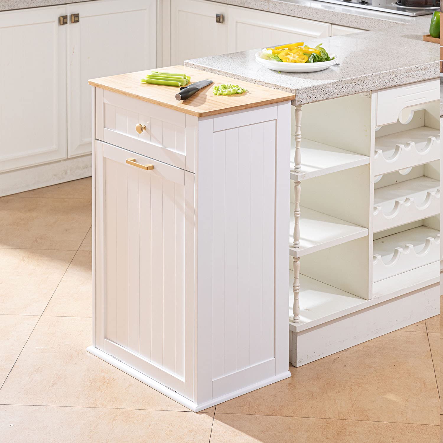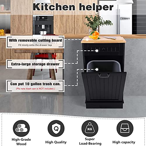 Tilt Out Trash Cabinet Kitchen Wooden Trash Can Cabinet Free Standing Waste Can Bin Holder Recycling Cabinet with Drawer Removable Cutting Board, ...