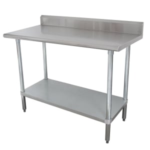 Stainless Steel Work Tables with Backsplash - AmGoodSupply.com A stainless steel work table with backsplash will provide you with the all-important flat surface for all your kitchen and food preparation tasks like tenderizing meat, chopping vegetables, kneading dough, assembling ingredients, and many more; while at the same time making sure your kitchen stays clean and your walls remain free from any spillage.