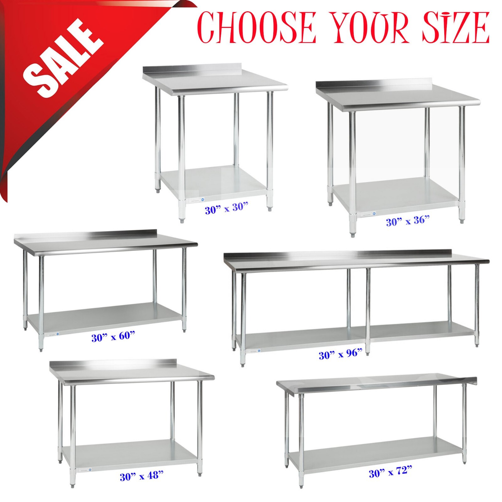 Stainless Steel Work Tables,Backsplash Prep Table,Commercial Kitchen ... All Stainless Steel Prep Table with 2" Backsplash, 24x48: $395.00: All Stainless Steel Prep Table with 2" Backsplash, 24x60: $425.00: All Stainless Steel Prep Table with 2" Backsplash, 24x72: $450.00: All Stainless Steel Prep Table with 2" Backsplash, 24x84 (6 Legs) $475.00: All Stainless Steel Prep Table with 2" Backsplash, 24x96 (6 Legs) $495.00