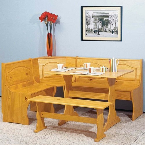 Corner Breakfast Nook Furniture - homystyle.com Add a cohesive look to your eat-in kitchen or breakfast nook with this three-piece dining set crafted from manufactured wood and showcasing a corner side chair one table and a dining bench. The Linon Sasha Breakfast Nook makes a striking alternative for a dinette table offering a perfect place for breakfast casual meals and midnight snacks ...