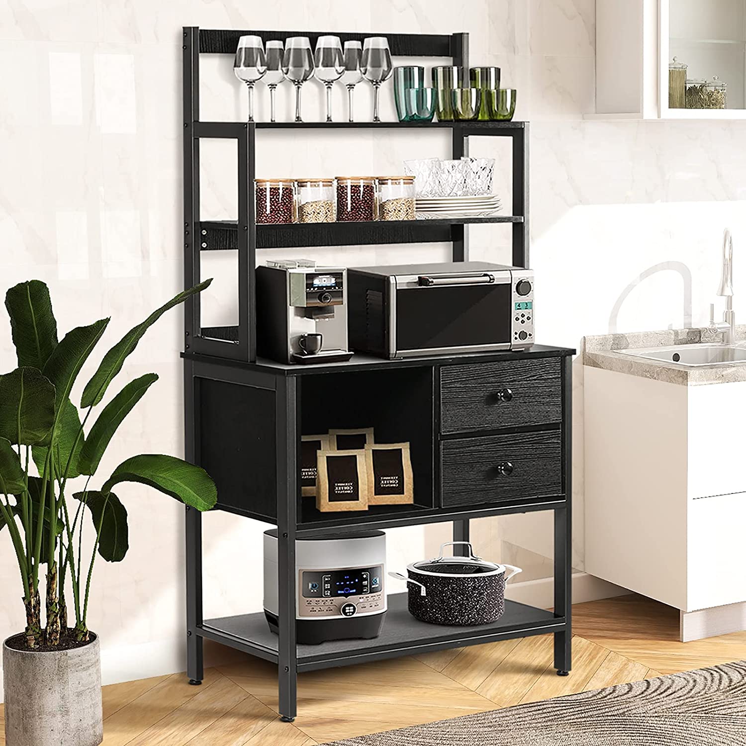 Kitchen bakers rack with drawers