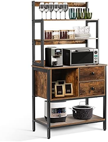 YGBH 6-Tier Kitchen Bakers Rack with Storage, Coffee Bar Table with 2 Drawers, Microwave Oven Stand, Vintage Utility Storage Shelf for Spice Rack ...