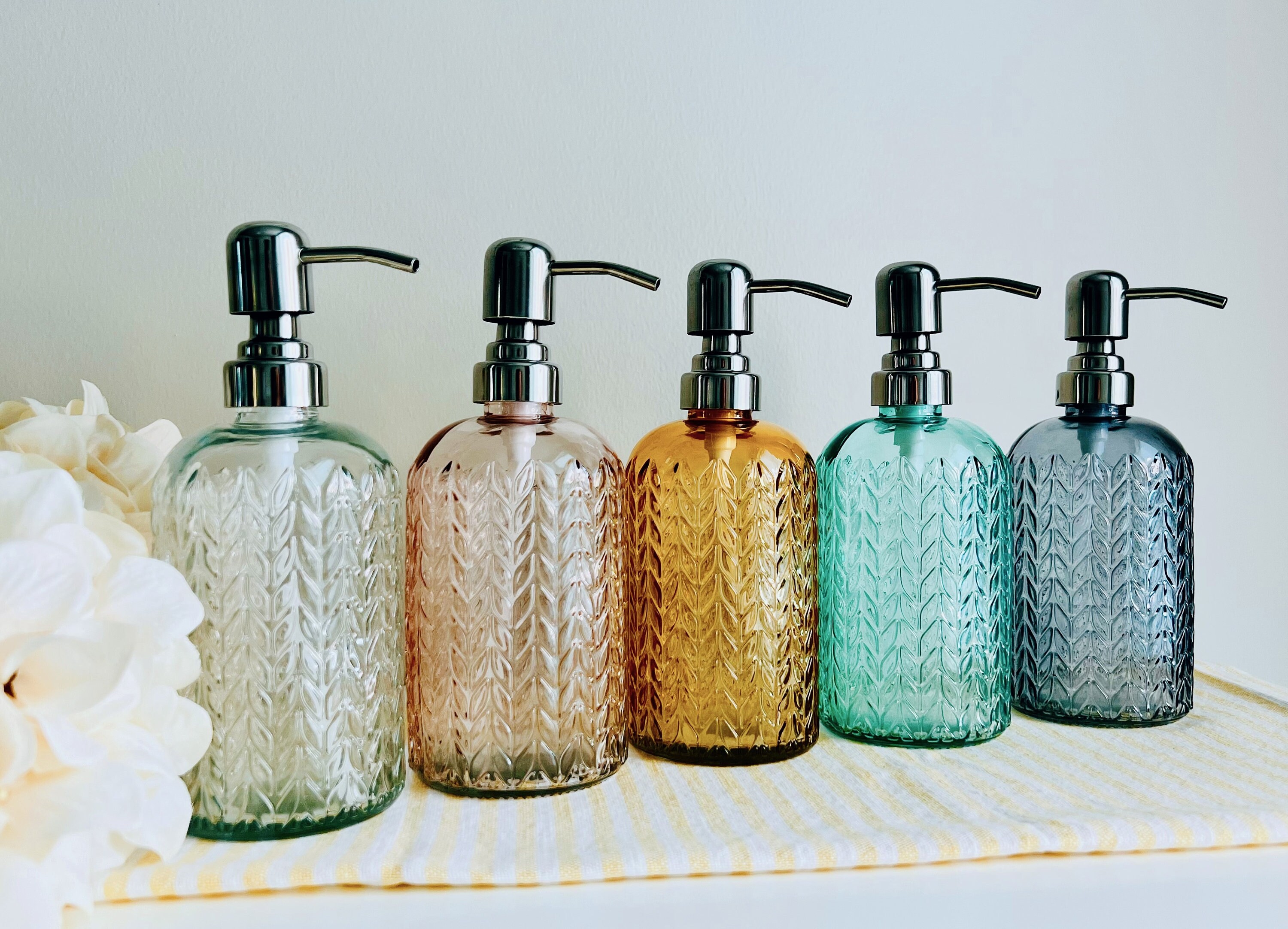Cutiset 3 Pack Assorted Glass 15 Ounce Lotion Soap Dispenser Bottle … 13.12.2019 · 【MULTI-PURPOSE】 An attractive and versatile kitchen or bathroom dispenser pump for all your liquid soap, lotion, hand soap, dish soap, bubble bath, DIY shampoo or lotion. Make your house neat, organized and stylish 【SIZE】 Measures 7.5’’H x 2.9’’ D. The refillable dispenser holds up to 15oz. of liquid soap or body lotion.