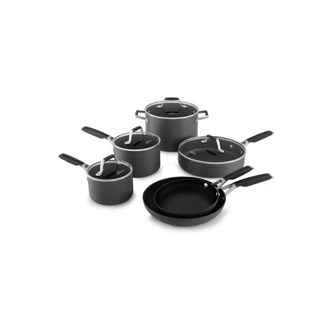 Calphalon 10-Piece Pots and Pans Set, Nonstick Kitchen Cookware with No-Boil Over Inserts and Stay-Cool Stainless Steel Handles, Black
