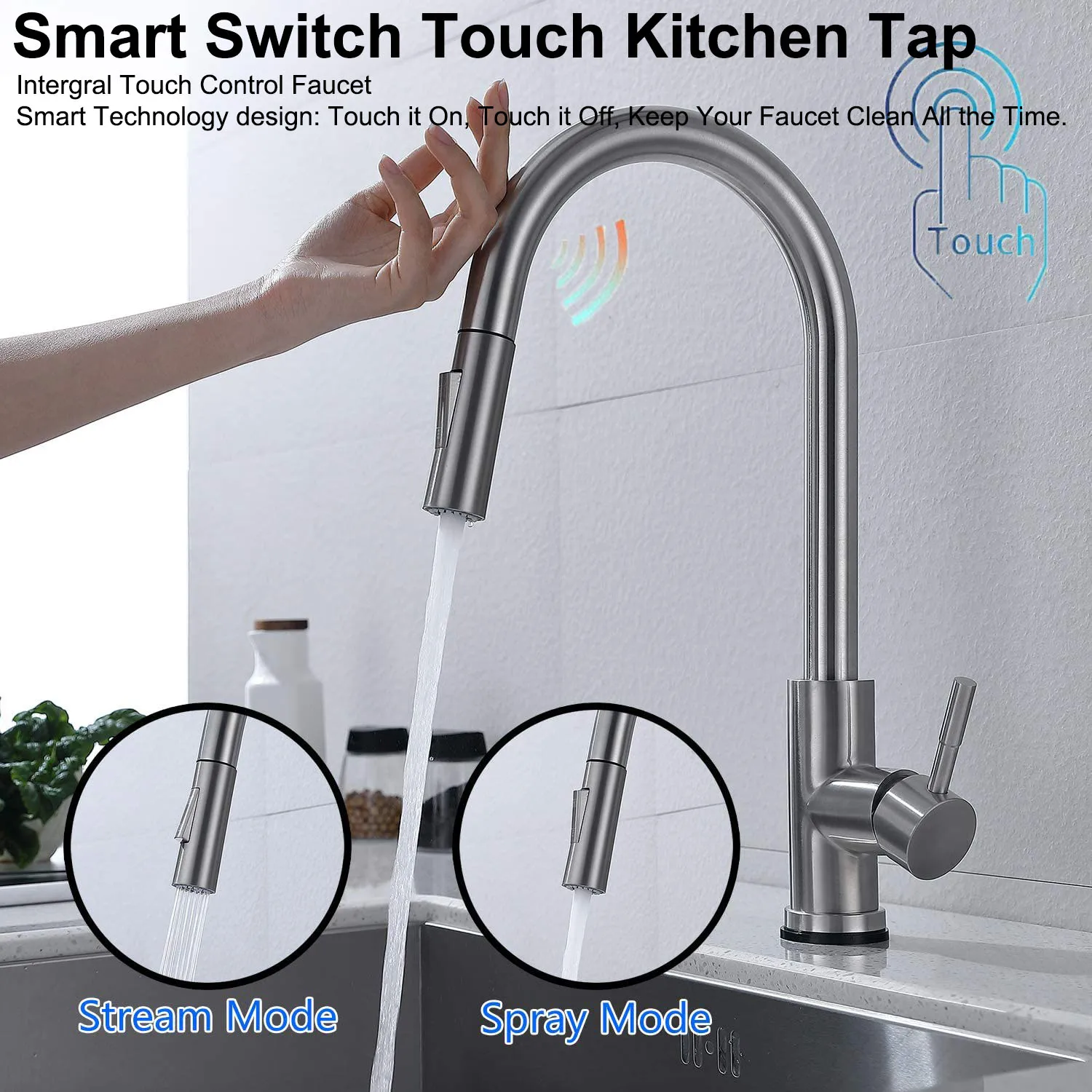 Touch Kitchen Faucet of Pull Down Sprayer Kitchen Mixer Tap Automatic Sensor Kitchen Faucets Smart Touch Pull Out Kitchen Faucet
