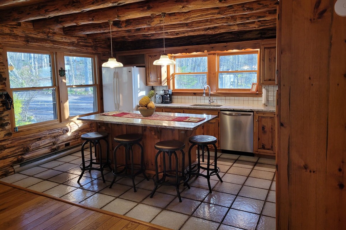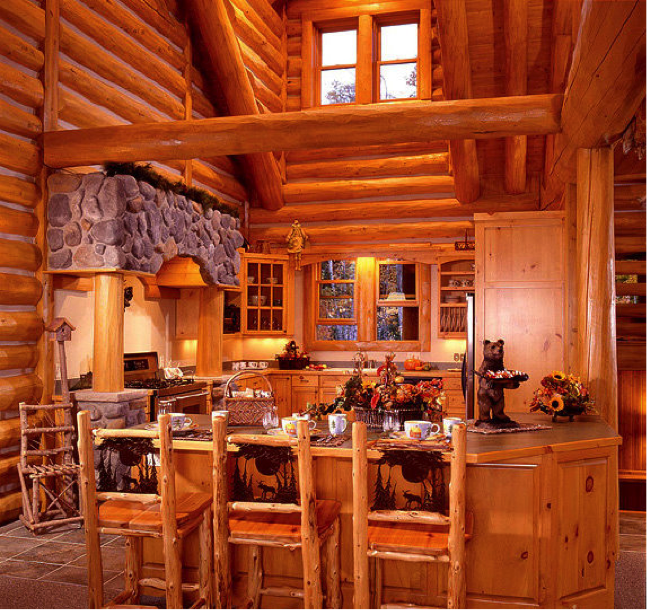 Log cabin kitchen islands