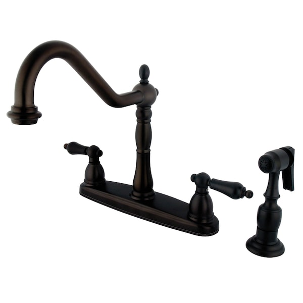 Harris Teeter - KS1295PLBS Restoration Wall Mount Bridge Kitchen Faucet with Brass Sprayer, Oil Rubbed Bronze, 1