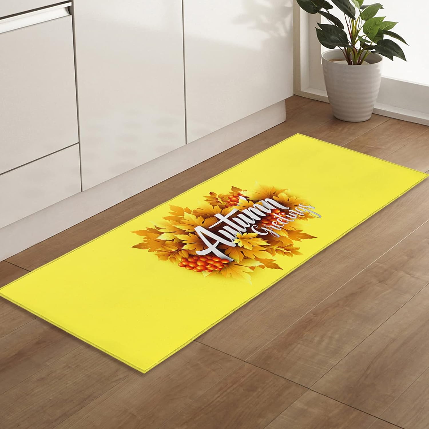 Door Mat Indoor Bathroom Rug Soft Carpet, Thanksgiving Day Maple Leaf Washable Kitchen Doormat Entry Way Rug Pad Yellow Welcome Mats for Front/Back ...