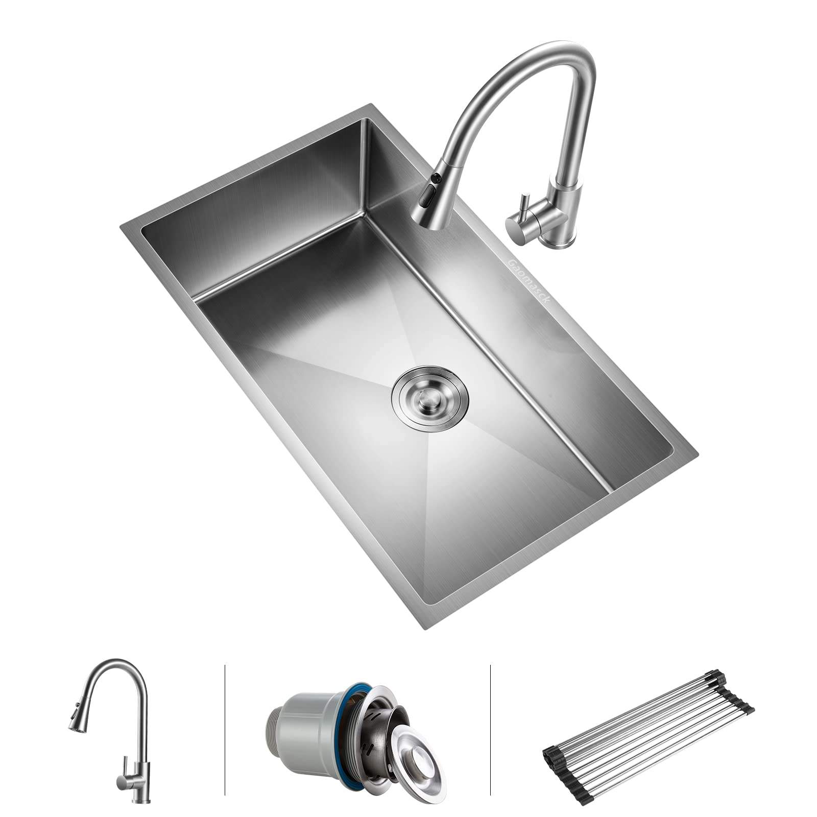 Gaomasck Kitchen Sinks And Faucet Combo, 30 x 16.5 inch Undermount Kitchen Sink Single Bowl 16 Gauge Stainless Steel Sink, Multifunctional Kitchen ...