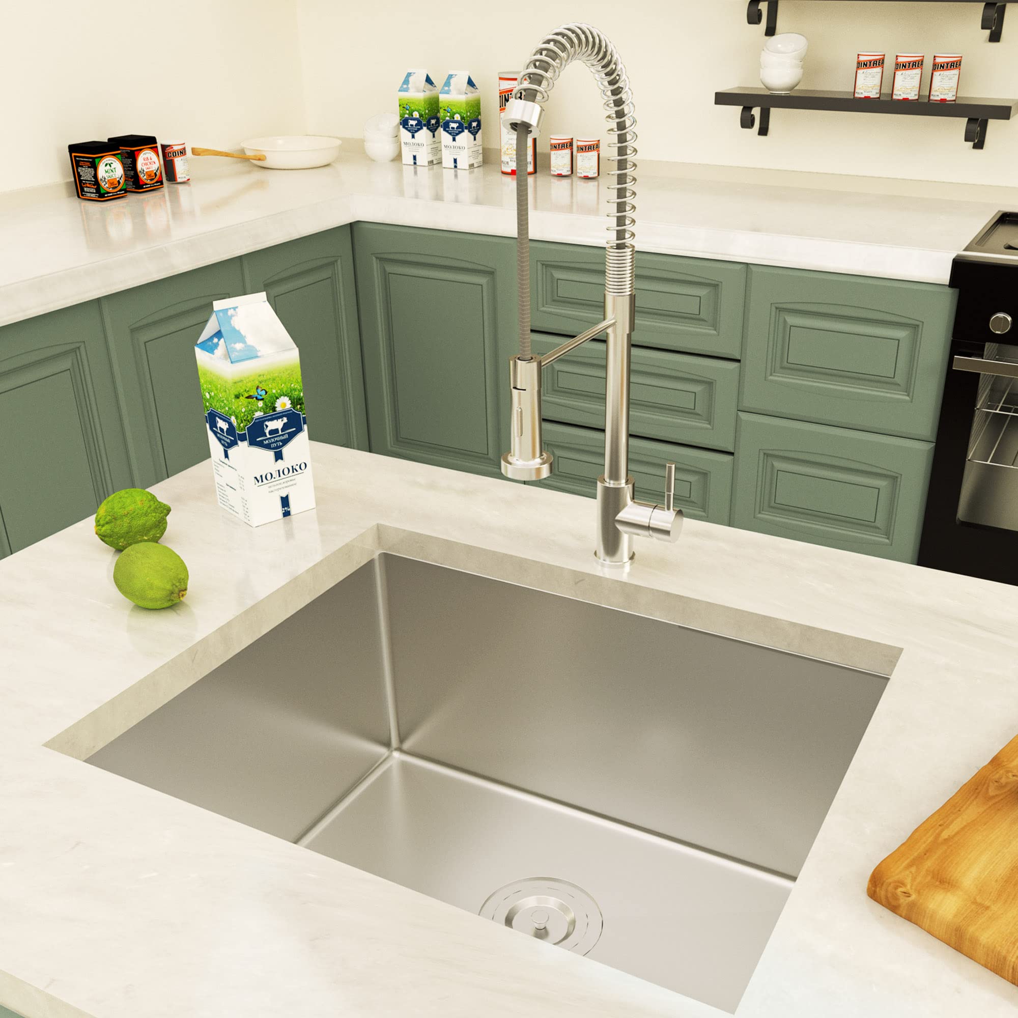 Kitchen Sink And Faucet Combo | Wayfair Undermount Kitchen Sink Combo Brushed Single Bowl Sink Folding Faucet Drain Pipe. by TFCFL $348.00 $402.96 ( 2) Free shipping Sale +2 Options Stainless Steel 17" L x 17" W Undermount Kitchen Sink by MR Direct From $109.22 $480.00 ( 130) Free 2-Day Delivery Get it by Wed. Nov 2 Angelico Handmade 33" L x 22" W Drop-In Kitchen Sink by Sinkology Kraus Kitchen Faucet and Sink Combos at FaucetDirect.com Kraus Kitchen Combo - Dex 24-3/4" Single Basin Stainless Steel Undermount Kitchen Sink with Bolden 18" Pre-Rinse Kitchen Faucet. Model: KD1US25-KPF-1610. Starting at $489.90. Available in 5 Finishes. Compare. Kraus Kitchen Combo - 24-3/4" Undermount Single Basin Sink with Nolen Pull-Down Spray Faucet. Model: KD1US25B-KPF-1673SFS. Amazon.com: kitchen sink combo 1-48 of 788 results for "kitchen sink combo" RESULTS Kraus KCA-1102 Stark Dual Mount Drop Sink and Pull-Down Commercial Kitchen Faucet Combo in Stainless Steel Finish, 33"- Single Bowl 456 $39995$429.95 FREE delivery Fri, Oct 28 Moen 21689 Dual-Mount 22 x 33-Inch Stainless Steel Sink with Pulldown Kitchen Faucet All-in-One Kit, Stainless 18 $49289 Amazon.com. Spend less. Smile more. 1-48 of over 1,000 results for"kitchen sink and faucet combo" RESULTS 32 Inch Kitchen sink with faucet, ATTOP 32''x18'' Undermount Handmade Stainless Steel Kitchen Sink Single Bowl Basin Faucet Combo in With Grid and Strainer 4.7 out of 5 stars51 $196.00$196.00 FREE delivery Nov 8 - 9 Only 14 left in stock - order soon.
