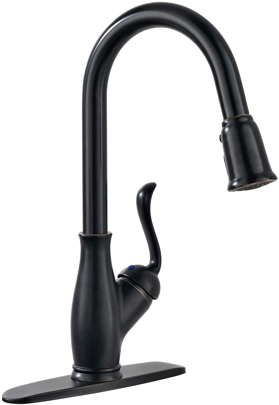 BWE Kitchen Faucet with Pull Out Sprayer 3 Spray Modes Oil Rubbed Bronze Single Handle High Arc Kitchen Sink Faucet with Deck Plate Lead-Free ...