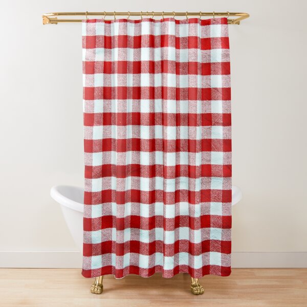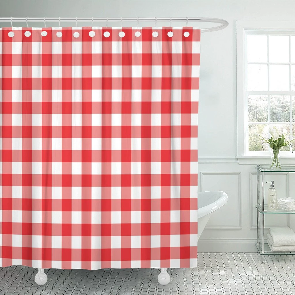 Checks Red and White Gingham Checkered Pattern Shower Curtain Polyester Fabric 72 x 78 inches Set with Hooks