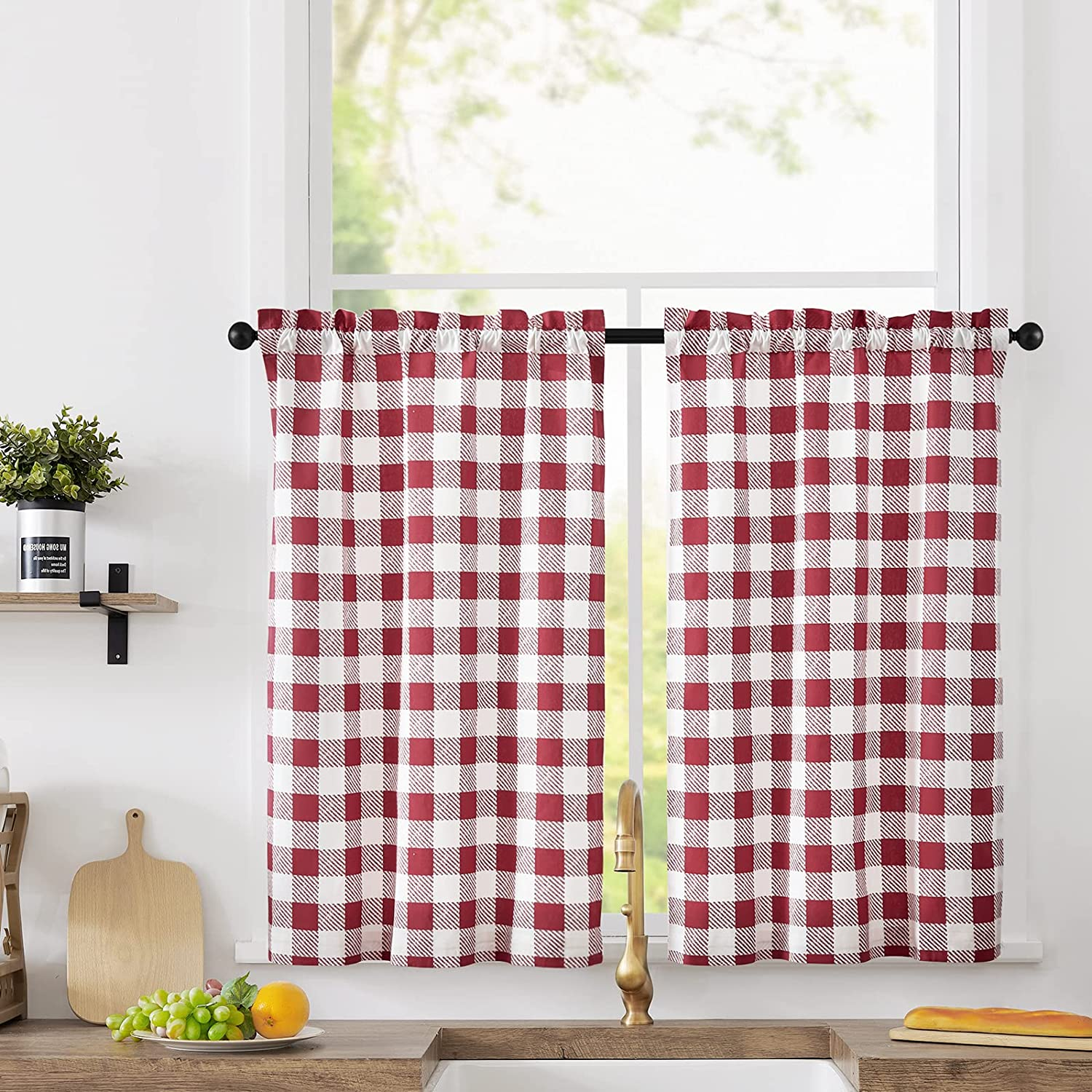Gingham Curtains - Walmart.com GlowSol 28"W x 45"L Tier Curtains Plaid Gingham Red White Farmhouse Blackout Cafe Curtains for Bathroom Window, 2 Panels. 1 5 out of 5 Stars. 1 reviews. 3 Piece Plaid, Checkered, Gingham Kitchen Curtain Set: 35% Cotton, 1 Valance, 2 Tier Panels, with Crochet Accent (Navy) From $19.44.