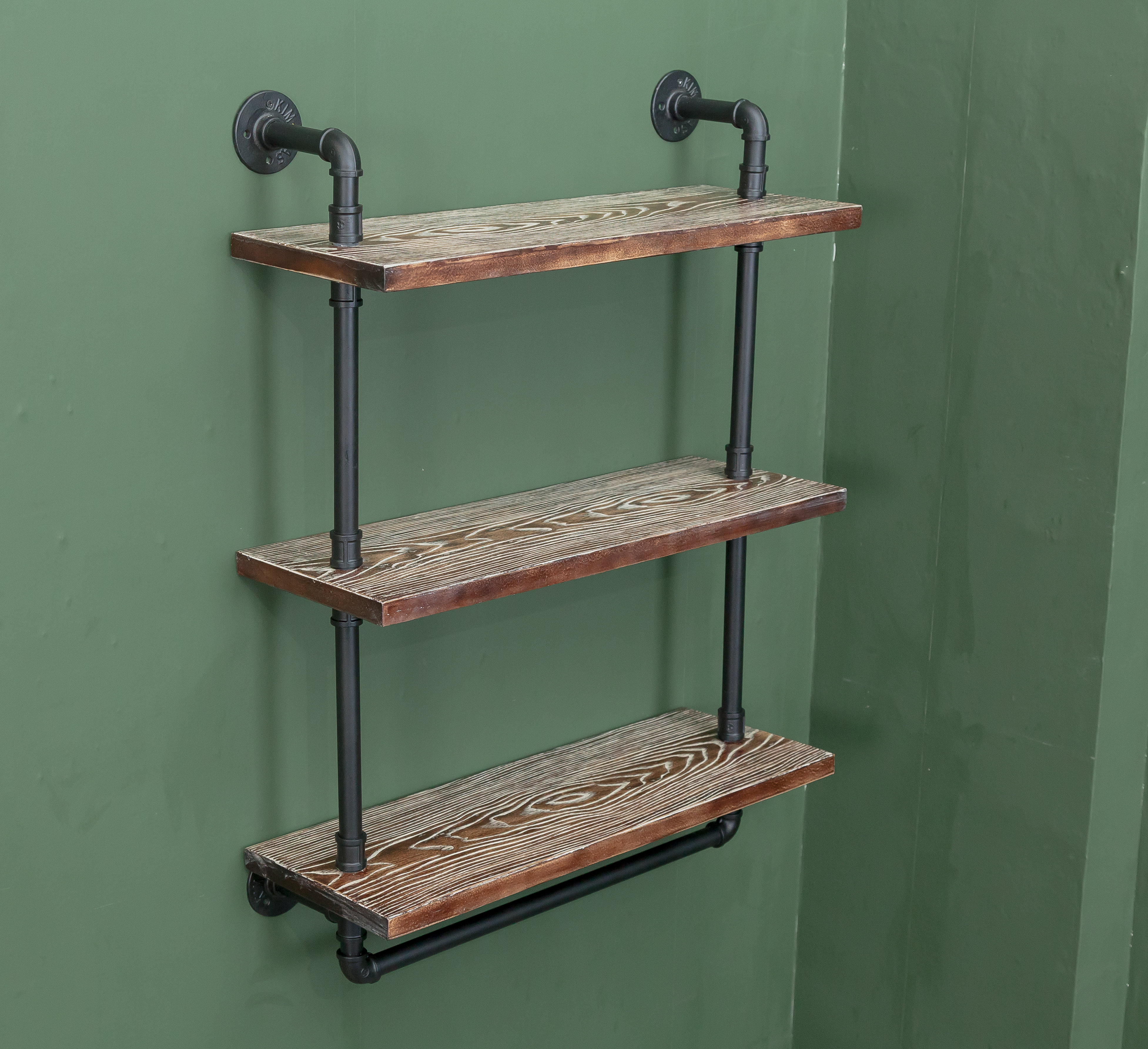 Industrial Pipe Shelf Wall Mounted,3 Tier Rustic Metal Floating Shelves,Steampunk Real Wood Book Shelves,Wall Shelving Unit Bookshelf Hanging Wall ...