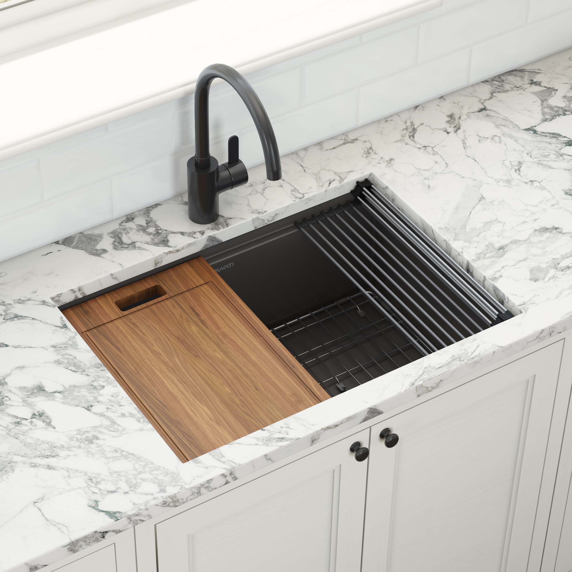 27-inch Apron-front Workstation Farmhouse Kitchen Sink 16 Gauge ... 27-inch Apron-front Workstation Farmhouse Kitchen Sink 16 Gauge Stainless Steel Single Bowl Model: RVH9050 FIND A RETAILER ADD TO COMPARE Register your product? Register Here Description Ruvati's Verona collection combines the best of both worlds: a functional workstation sink and a bold stainless steel apron-front installation.
