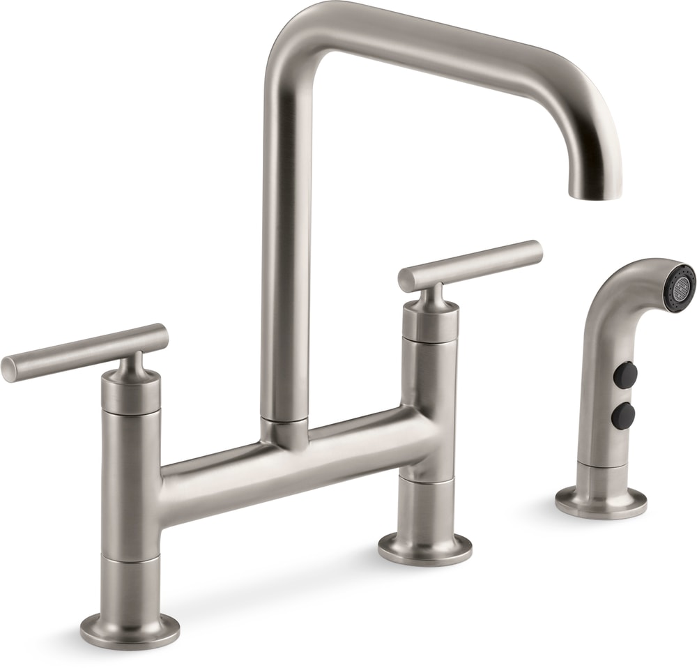 Kohler Purist 2-Hole Deck-Mount Bridge Kitchen Faucet with 8 ...