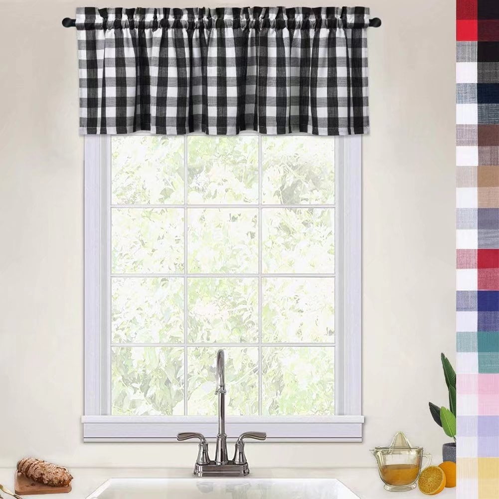 Goroly Home Black and White Buffalo Check Cotton Valance for Windows Kitchen Bedroom Bathroom Dining Room, 3 Inch Rod Pocket Rustic Farmhouse Plaid ...