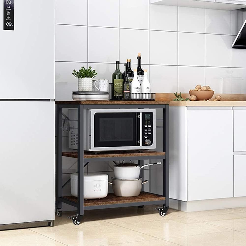 3-Tier Kitchen Microwave Cart on Wheels, Rolling Bakers Rack Movable Kitchen Storage Shelf Rack Cabinet Organizer for Kitchen Living Room