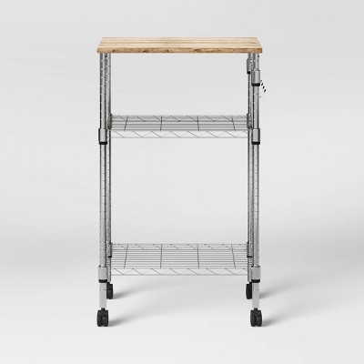 StyleWell Grayson Small Chrome Metal Rolling Kitchen Microwave Cart with Natural Wood Top and Tiered Shelves (24" W) KC21-11 - The Home Depot