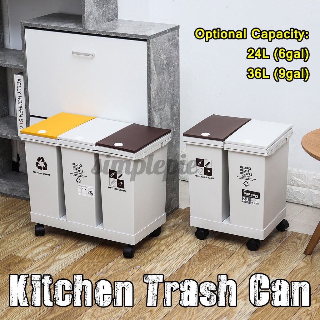 42L Large Double Layers Garbage Trash Cans Kitchen Storage Vertical Waste Sorting Bins with Wheel Garbage Bag Holder Recyclable